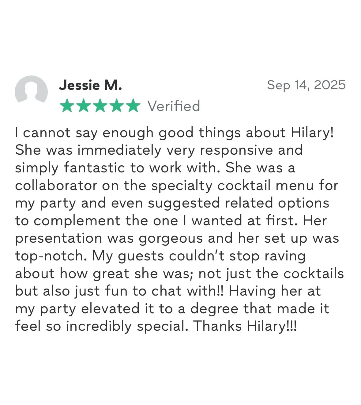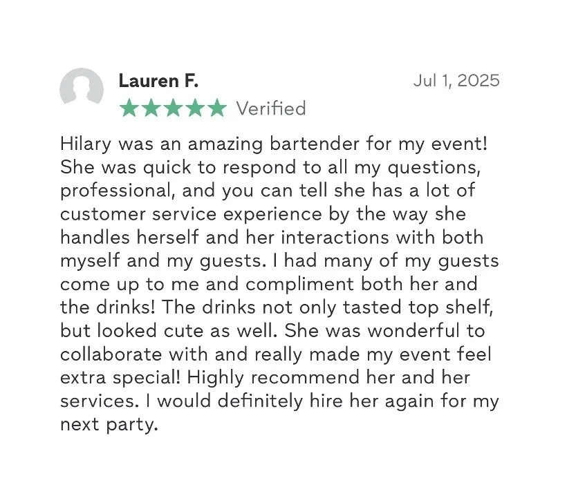 - Professional bartending service for up to 25 guests